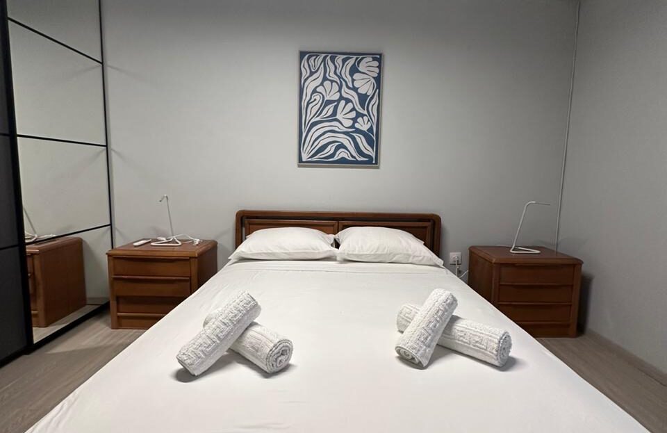 Apartment 75m2, 1st floor, small living room, separate kitchen, 2 bedrooms, 1 bathroom, air conditioning, central heating-petrol, fully renovated in 2023 and fully equipped. Construction 1984.