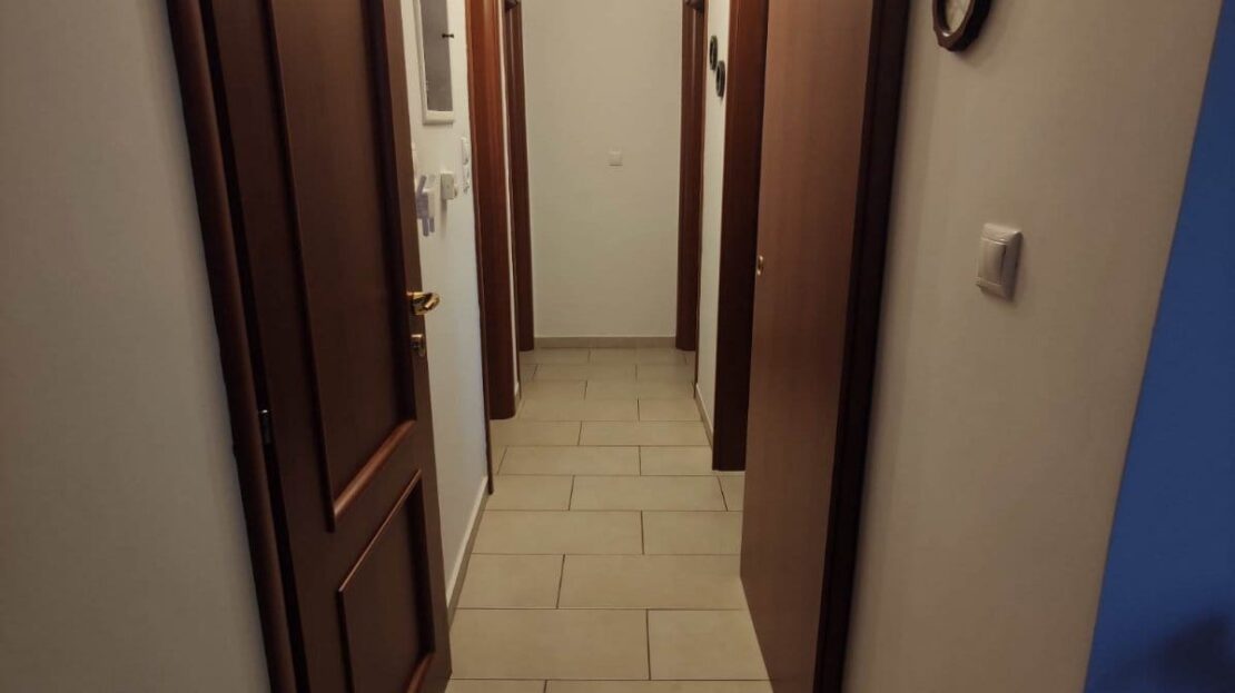 Apartment 105m², 5th floor, living room, separate kitchen, 3 bedrooms, 1 bathroom, wc, fireplace, solar water heater, autonomous heating-petrol, parking.