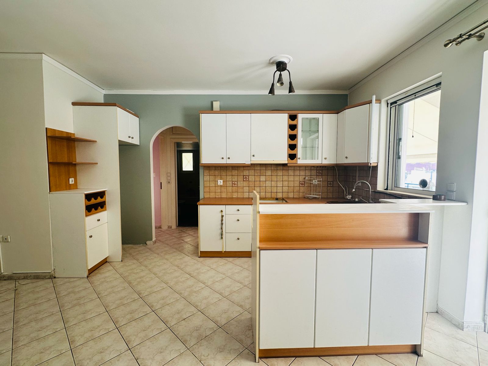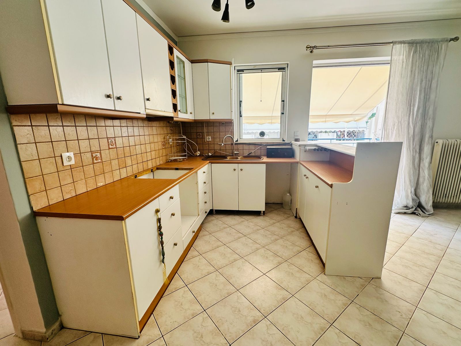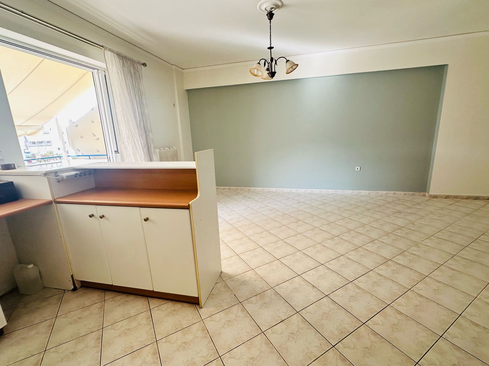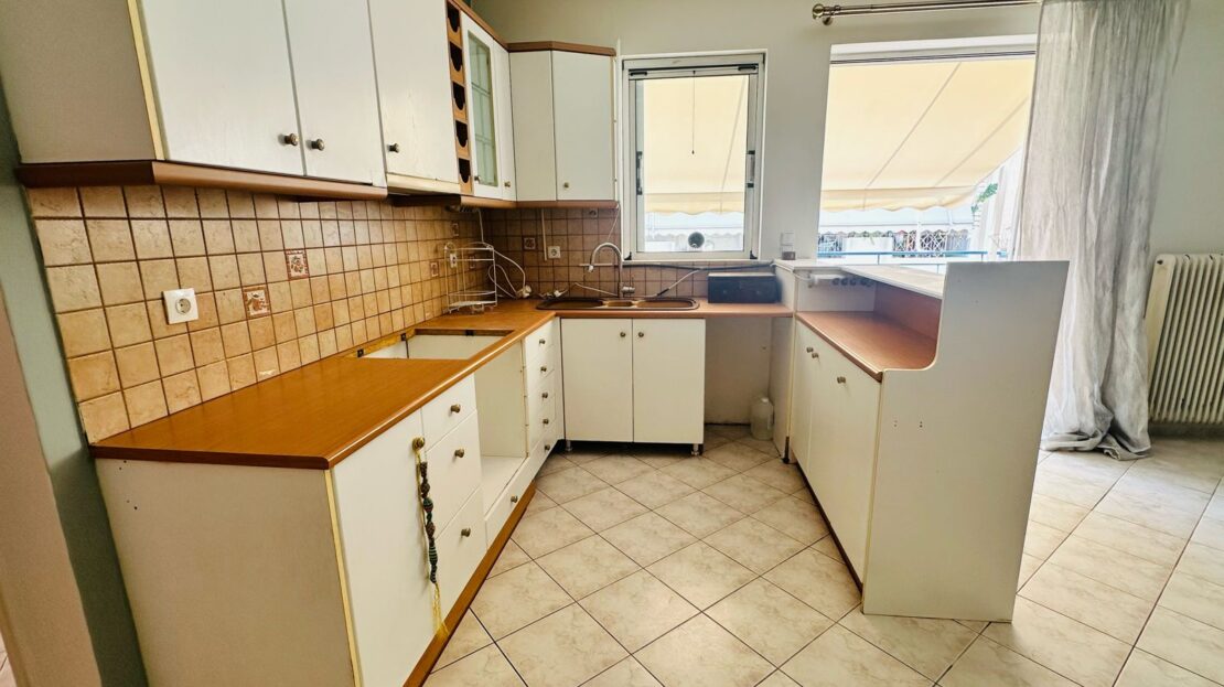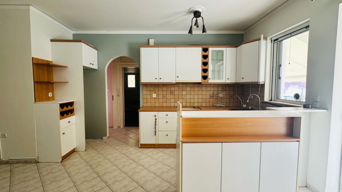 Apartment 78m2, 4th floor, living room, open plan kitchen, 2 bedrooms, 1 bathroom, central heating-petrol, parking.